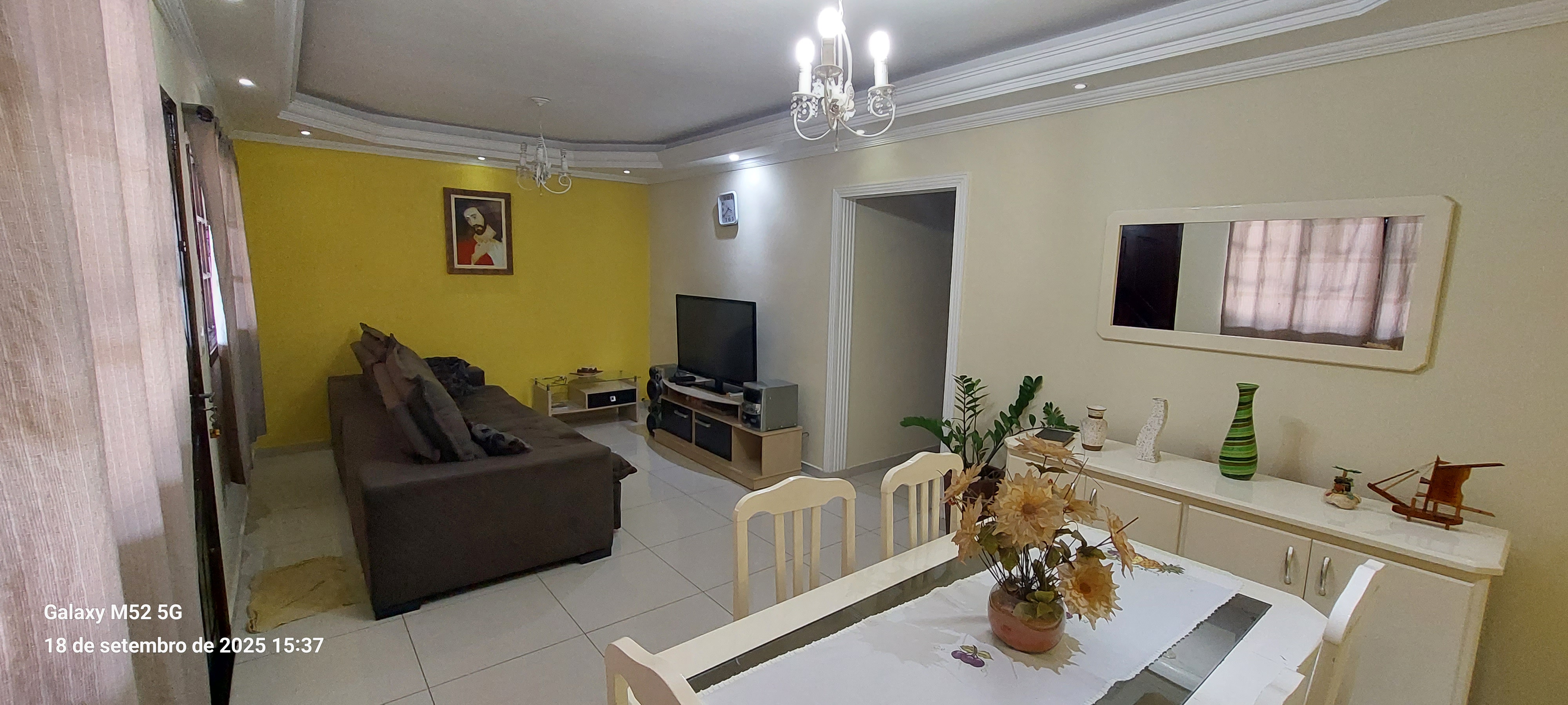 Casa espaçosa com 3 dormitórios sendo 1 suíte, 3 banheiros, sala com 2 ambientes, escritório, área de serviço e área gourmet amplas, quintal com árvores frutíferas.